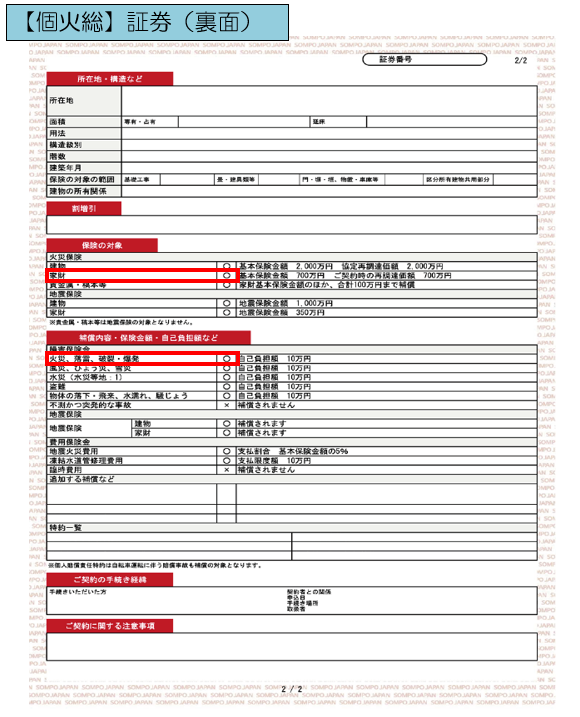 保険証券でご確認いただく場合は、以下サンプル画像の赤枠部分に〇がある場合に