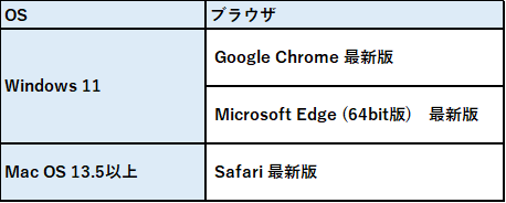 全てのOS・ブラウザにてご利用いただけますが、推奨環境以外をご利用の場合、