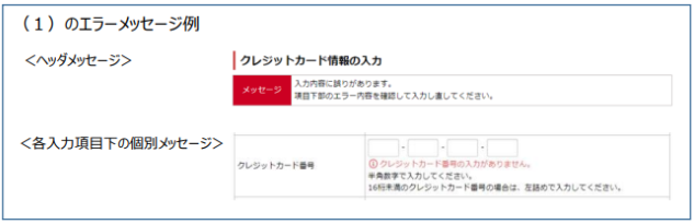 ⇒未入力の項目がございます。各入力項目のメッセージをご確認の上で入力してください。