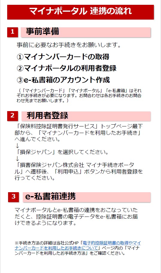 保険料控除証明書 発行サービス(外部サイト)にある「マイナンバーカードを利用したお手続きについて」のリンクより手続き可能です。手続きの詳細については、当社HPをご確認ください。
